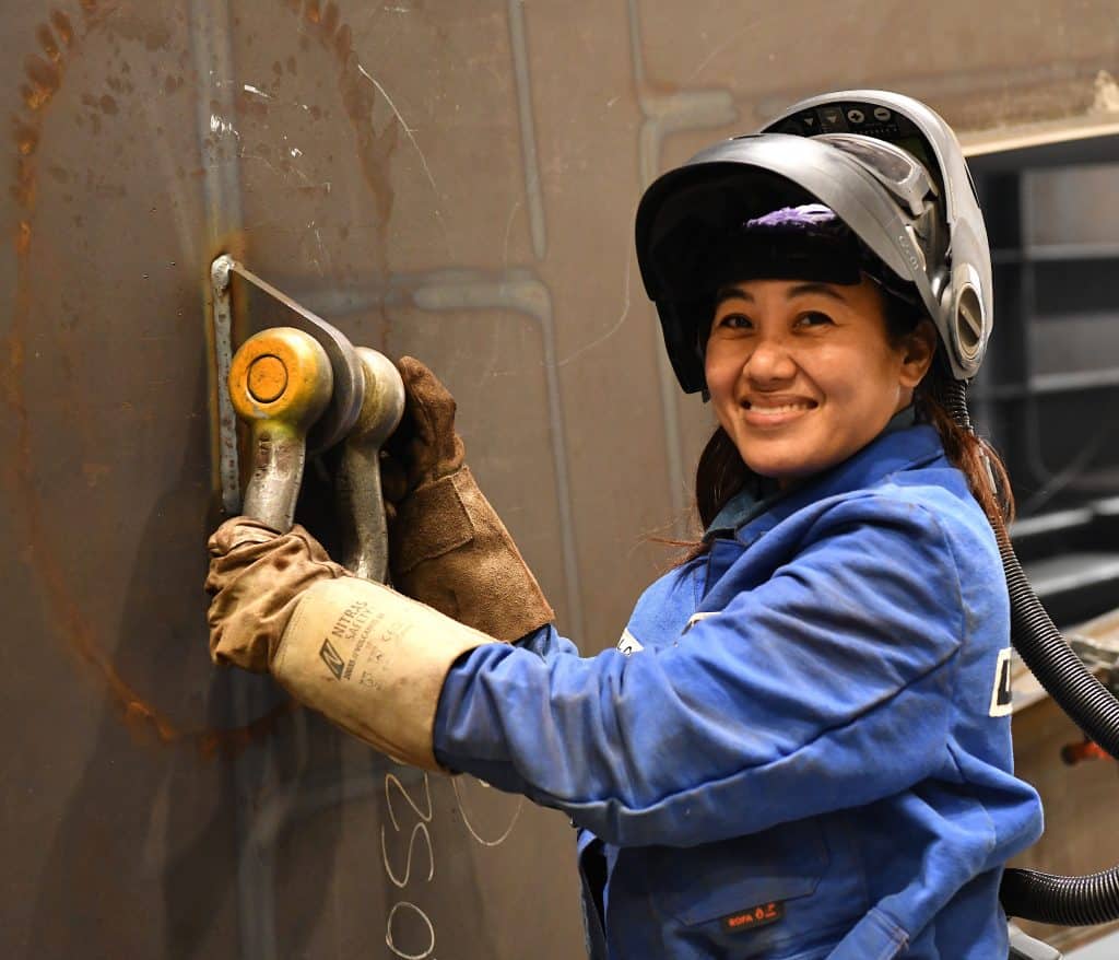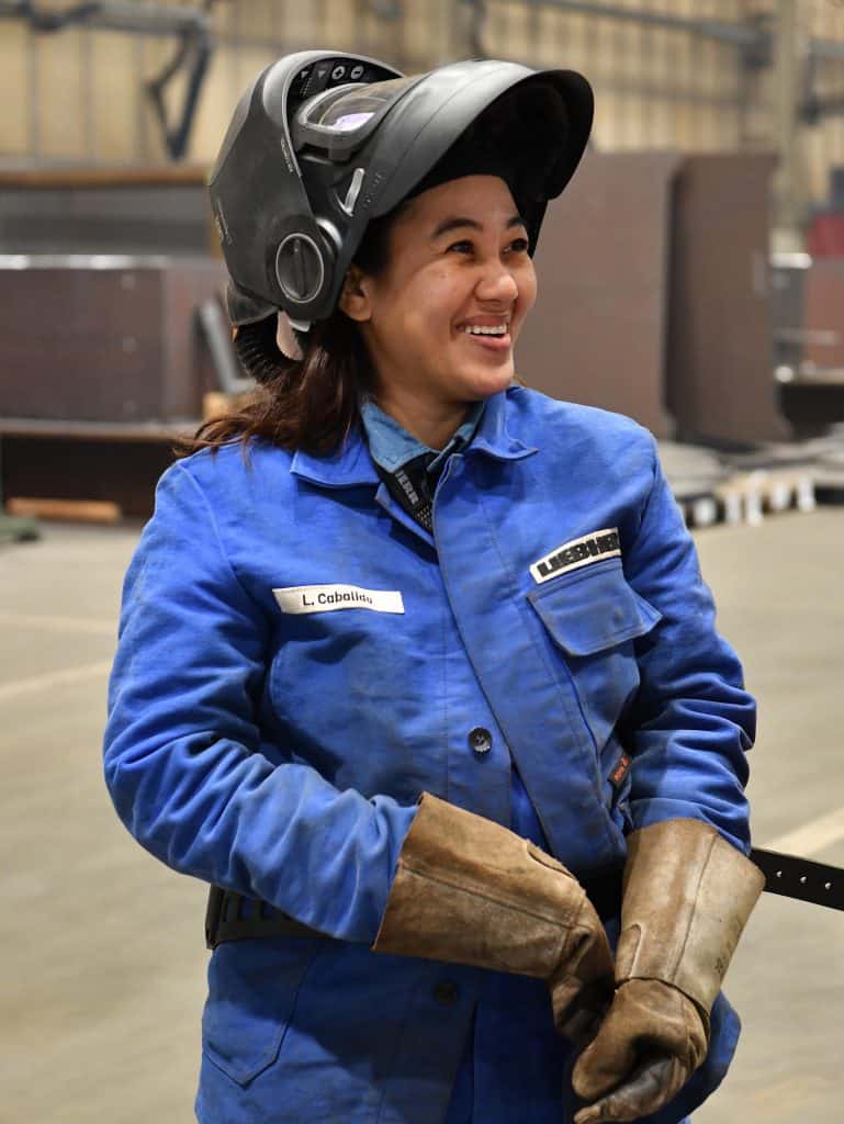 Liezl Cabalida lebt und arbeitet seit Ende Januar für den Kranhersteller Liebherr in Rostock. Das Schweißer-Handwerk hat sie auf den Philippinen gelernt und dort neun Jahre lang betrieben. Sie weiß sich in diesem Männerberuf zu behaupten.