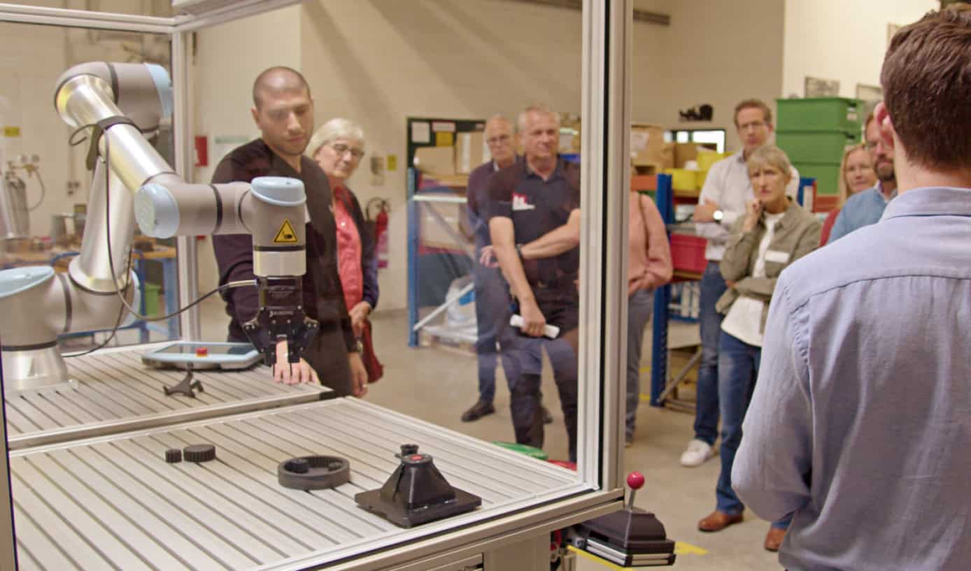 NORDMETALL unterstützt seine Mitgliedsunternehmen durch unterschiedliche Angebote. Hierzu zählen insbesondere Informations-, Netzwerk- und Austauschformate, aber auch praktische Initiativen, wie etwa die Live-Demonstration eines Cobots gemeinsam mit der RWTH Aachen University bei Pano Verschluss in Itzehoe und beim Ventilspezialisten Mankenberg in Lübeck. Kollaborative Robotik unterstützt Menschen mit Beeinträchtigungen bei wiederkehrenden oder anstrengenden Tätigkeiten am Arbeitsplatz.