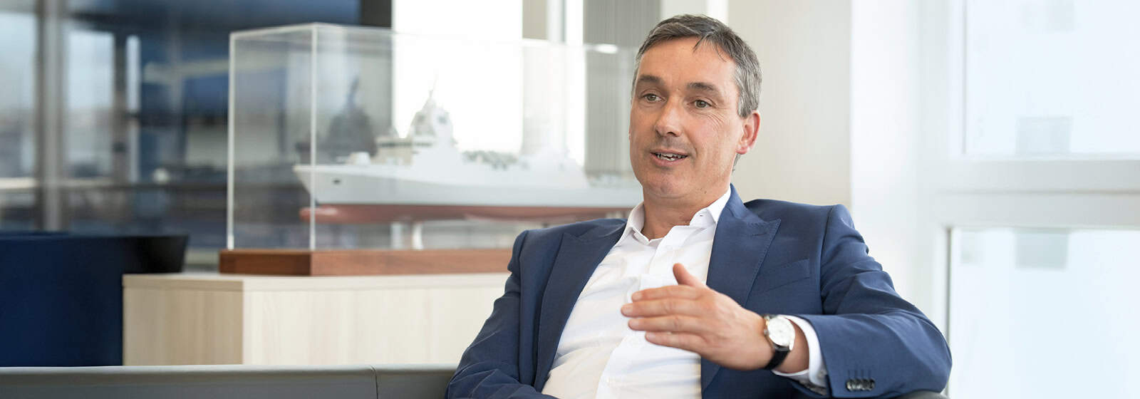 Die Kieler Werft hat sich auf den Neubau von Überwasserschiffen sowie auf komplexe militärische Umbau- und Instandsetzungsprojekte spezialisiert. In den vergangenen Jahrzehnten wurden hier unter anderem Korvetten und Fregatten für verschiedene nationale und internationale Marinen hergestellt. Aktuell ist GERMAN NAVAL YARDS unter anderem am F126-Projekt beteiligt, dem Milliarden schweren Großvorhaben der Deutschen Marine zum Bau von sechs Fregatten der sogenannten Niedersachsen-Klasse, das durch Verzögerungen beim Hauptauftragnehmer, der niederländischen Damen-Werft, ins Stocken geraten ist. Rino Brugge bedauert die Situation seines früheren Arbeitgebers, aber er geht davon aus, dass schnell eine Lösung gefunden wird.